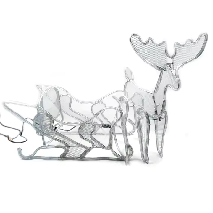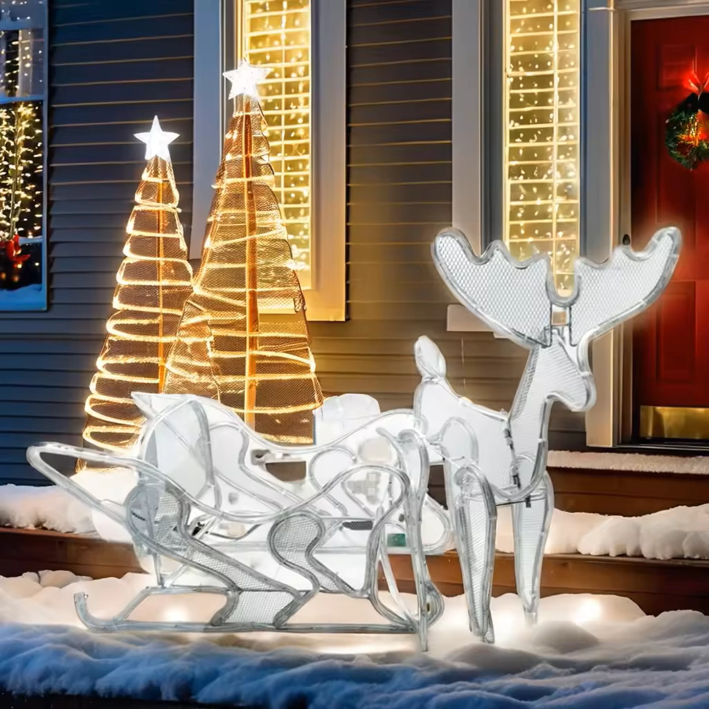 - 1 Rena com trenó 42 LEDs Branco frio strobinhos.