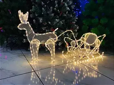 - 1 Rena com trenó Luz Branca quente 8 funções.