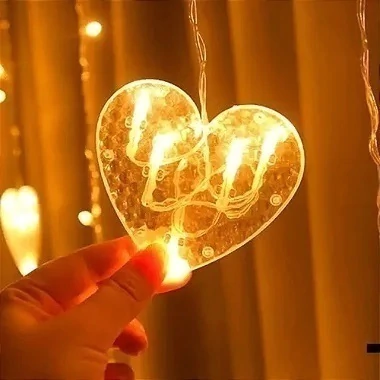 A Cascata com 138 LEDs Branco quente com corações na ponta 8 funções tomada macho e fêmea 2,5 metros 220V, ideal para todo tipo de decoração; O produto mais utilizado por arquitetos e decoradores para decorar casas, fachadas, lojas, prédios residenciais e comercio de todo o Brasil.