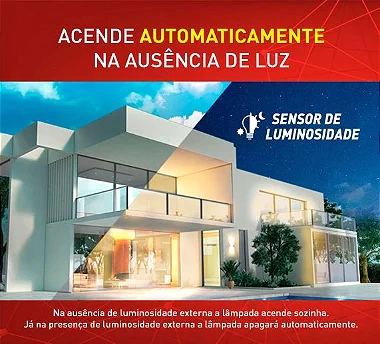 lâmpada, ao captar a redução da luz natural, ao anoitecer a lâmpada, acenderá automaticamente e ao