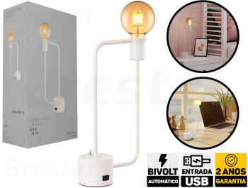 As luminárias de mesa ajudam a dar um toque especial e intimista na sua decoração, tornando a iluminação aconchegante para os ambientes mais privativos da casa, além de serem produtos extremamente funcionais para escritórios e home office. É por isso que o design clean do Luminária de Mesa Aramis Com Entrada USB 40x21cm Aço Branco Fosco - Avant 341365608 foi pensado para compor a decoração desses ambientes, seja ele luminária de mesa de quarto (luminária de mesa de cabeceira), luminária de mesa para sala, luminária de mesa de escritório ou até mesmo luminária de mesa infantil. Sua estrutura comporta tensão Bivolt, utilizando 1x Filamento (não inclusas) e soquete E27. Sendo luminária de mesa para sala, luminária de mesa para quarto e luminária de mesa para cabeceira, geralmente as cores mais utilizadas para estes tipos de produtos são: luminária de mesa linho, luminária de mesa cru, luminária de mesa branco e luminária de mesa amadeirado (luminária de mesa imbuia, luminária de mesa freijó, luminária de mesa teca ou outras luminárias de mesa de madeira). Especialmente, essa opção é entregue na cor Branco Fosco. A luminária de mesa conta com material: aço, porém é possivelmente encontrar dentro desse segmento, luminária de mesa de MDF, luminária de mesa de madeira, luminária de mesa de alumínio (metal), luminária de mesa cúpula e luminária de mesa de tecido. O produto é perfeito para compor a decoração de escritório, quarto, sala de estar, sala de jantar, home office, hall, varanda, closet. As dimensões do produto são importantes para que você possa planejar a disposição do objeto no espaço. Este modelo da Avant conta com dimensões de: 40x21cm. A RT Iluminação indica que a infraestrutura para a instalação seja organizada já com o produto em mãos, evitando problema de furação e recortes, por exemplo. O 341365608 conta com 3 meses de garantia da loja e 12 meses de garantia diretamente com o fabricante. Veja mais detalhes em nossas Condições e Regulamentos. Faça a escolha certa com os pendentes da Avant. Aposte na beleza das luminárias de mesa da RT Iluminação e transforme a sua decoração com um toque de luz com a marca Avant.