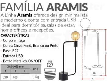 As luminárias de mesa ajudam a dar um toque especial e intimista na sua decoração, tornando a iluminação aconchegante para os ambientes mais privativos da casa, além de serem produtos extremamente funcionais para escritórios e home office. É por isso que o design clean do Luminária de Mesa Aramis Com Entrada USB 40x21cm Aço Preto Fosco - Avant RT341355807 foi pensado para compor a decoração desses ambientes, seja ele luminária de mesa de quarto (luminária de mesa de cabeceira), luminária de mesa para sala, luminária de mesa de escritório ou até mesmo luminária de mesa infantil. Sua estrutura comporta tensão Bivolt, utilizando 1x Filamento (não inclusas) e soquete E27. Sendo luminária de mesa para sala, luminária de mesa para quarto e luminária de mesa para cabeceira, geralmente as cores mais utilizadas para estes tipos de produtos são: luminária de mesa linho, luminária de mesa cru, luminária de mesa branco e luminária de mesa amadeirado (luminária de mesa imbuia, luminária de mesa freijó, luminária de mesa teca ou outras luminárias de mesa de madeira). Especialmente, essa opção é entregue na cor Preto Fosco. A luminária de mesa conta com material: aço, porém é possivelmente encontrar dentro desse segmento, luminária de mesa de MDF, luminária de mesa de madeira, luminária de mesa de alumínio (metal), luminária de mesa cúpula e luminária de mesa de tecido. O produto é perfeito para compor a decoração de escritório, quarto, sala de estar, sala de jantar, home office, hall, varanda, closet. As dimensões do produto são importantes para que você possa planejar a disposição do objeto no espaço. Este modelo da Avant conta com dimensões de: 40x21cm. A RT Iluminação indica que a infraestrutura para a instalação seja organizada já com o produto em mãos, evitando problema de furação e recortes, por exemplo. O RT341355807 conta com 3 meses de garantia da loja e 12 meses de garantia diretamente com o fabricante. Veja mais detalhes em nossas Condições e Regulamentos. Faça a escolha certa com os pendentes da Avant. Aposte na beleza das luminárias de mesa da RT Iluminação e transforme a sua decoração com um toque de luz com a marca Avant.