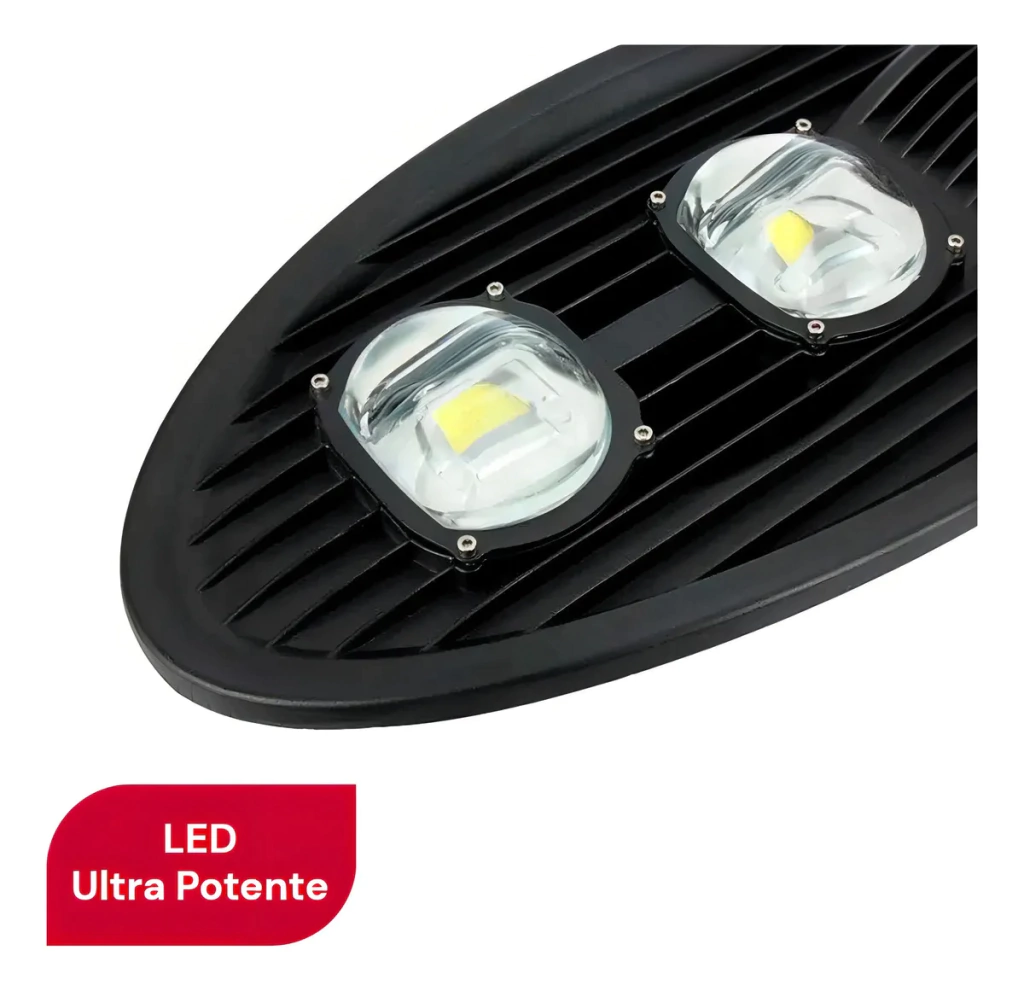 Modelo: Luminária LED pública COB preta 100W com sensor fotocélula 6500K bivolt IP66.
