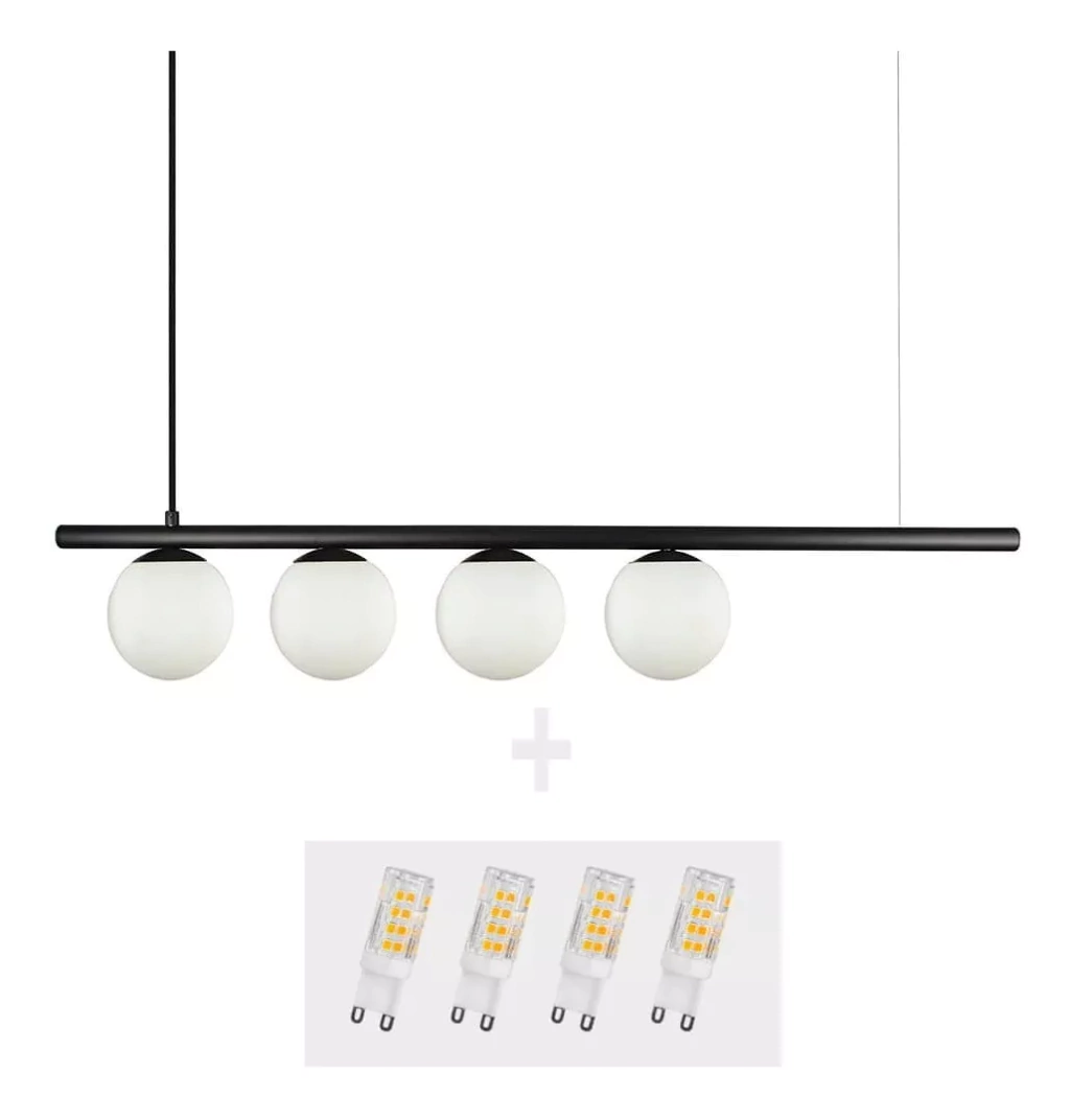 Os pendentes são tendência em projetos de iluminação decorativa em todo o país. É por isso que o design moderno do Pendente com 4 globos Moon 15x80x12cm Aluminio preto e Vidro - RT Iluminação RT5719 foi pensado para compor a decoração de qualquer ambiente, seja ele residencial, comercial ou empresarial. Outro benefício do modelo é sua funcionalidade, que proporciona uma iluminação bem distribuída por todo o espaço, garantindo comodidade e praticidade. Sua estrutura comporta tensão Bivolt, utilizando 4 x Halopin (não inclusas) e soquete G9. Sendo pendente para cozinha, pendente para sala e pendente para quarto, geralmente as cores mais utilizadas para estes tipos de produtos são: pendente branco, pendente preto, pendente dourado e pendente cobre (combinado com alguns elementos como globo transparente, globo fosco e globo âmbar). Especialmente, essa opção é entregue na cor Preto e Fosco. O pendente conta com material: Alumínio e Vidro, porém é possivelmente encontrar dentro desse segmento, pendente alumínio (metal), pendente cristal, pendente madeira (ou MDF) ou mesmo pendente vidro (o famoso pendente bola / pendente globo de vidro). O produto é perfeito para compor a decoração de cozinha, sala de estar, sala de jantar, hall, lavabo, varanda. As dimensões do produto são importantes para que você possa planejar a disposição do objeto no espaço. Este modelo da RT Iluminação conta com dimensões de: 15x80x12cm. A RT Iluminação indica que a infraestrutura para a instalação seja organizada já com o produto em mãos, evitando problemas de furação e recortes, por exemplo. O RT5719 conta com 3 meses de garantia da loja e 12 meses de garantia diretamente com o fabricante. Veja mais detalhes em nossas Condições e Regulamentos. Faça a escolha certa com os pendentes da RT Iluminação.